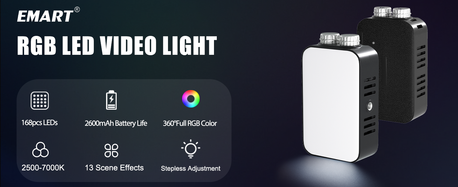 EMART Portable LED Selfie Light, RGB Rechargeable Video Light 2600mAh 2500K-7000K,3 Lighting Modes 13 Scenes with Dual 1/4″ Threaded Adaptable to Cameras, Tripods for Video