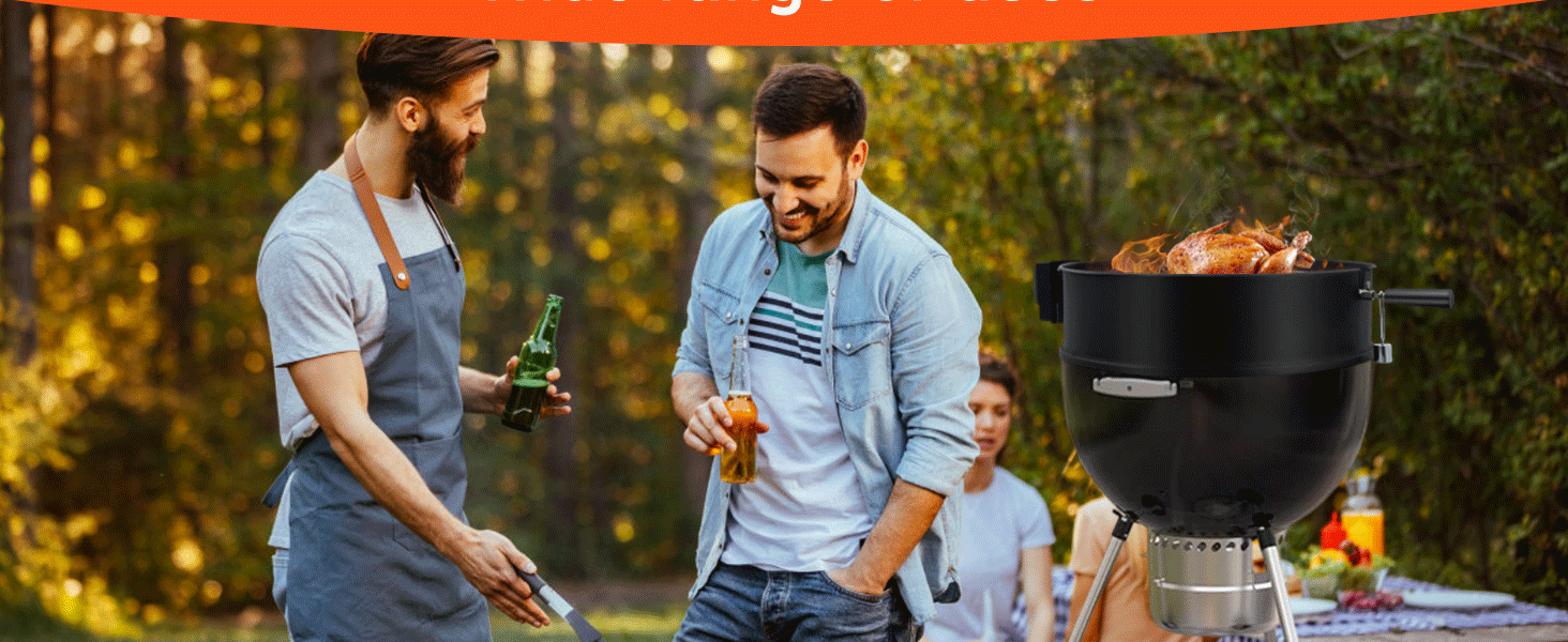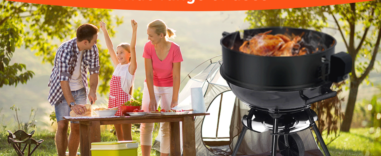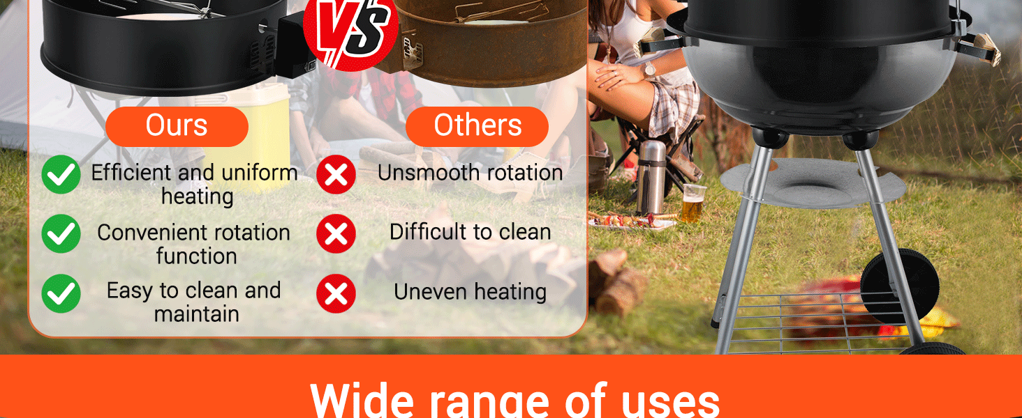 【Ideal for Large Gatherings】- Perfect for large-scale barbecue events with many participants. It cooks ingredients quickly, allowing you to roast two whole chickens, grilled meats, and various other skewered delicacies simultaneously. Also suitable for low-height work scenarios like vehicle maintenance and furniture repairs.