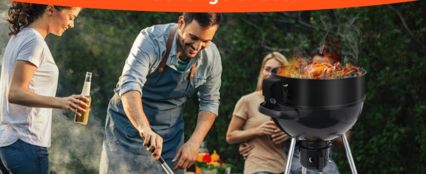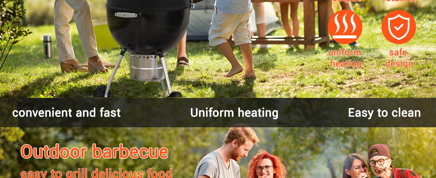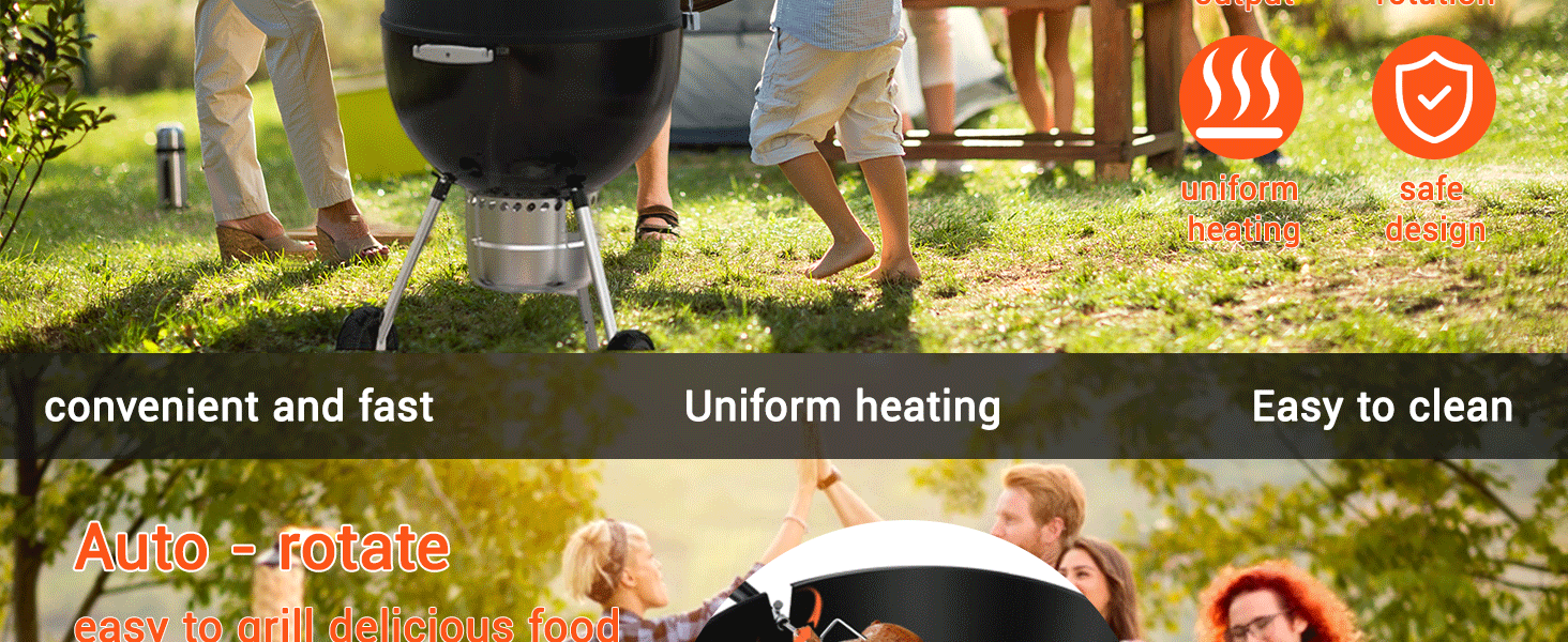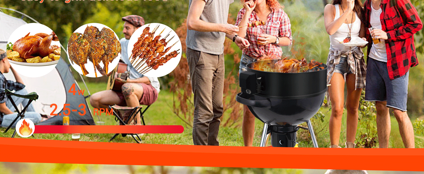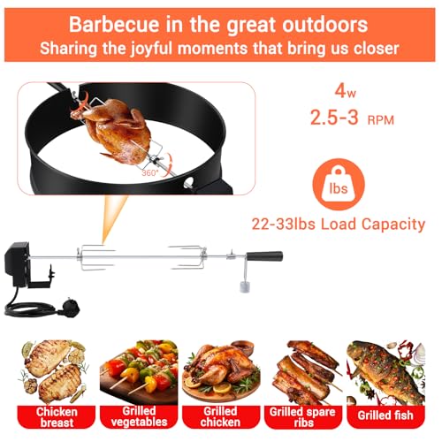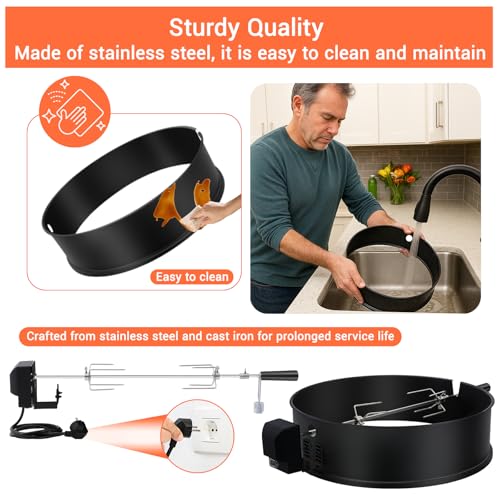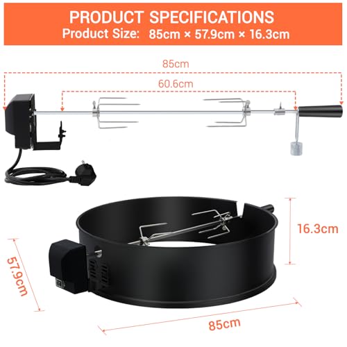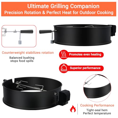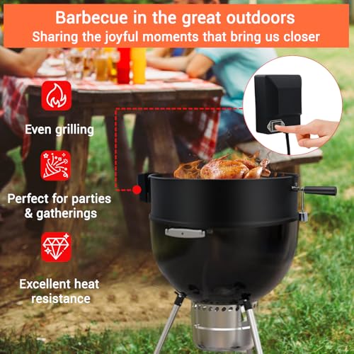 【Safety and Compatibility】- Superior performance with safety-focused design ensures reliable operation. 4-watt motor with 2.5–3 RPM. Compatible with multiple grill and charcoal grill brands, including Weber and other charcoal grills with an outer diameter of 55–57 cm. (Note: Not compatible with Weber Smokey Mountain grills).