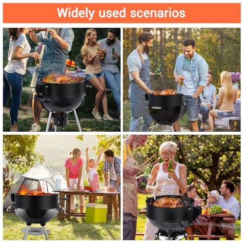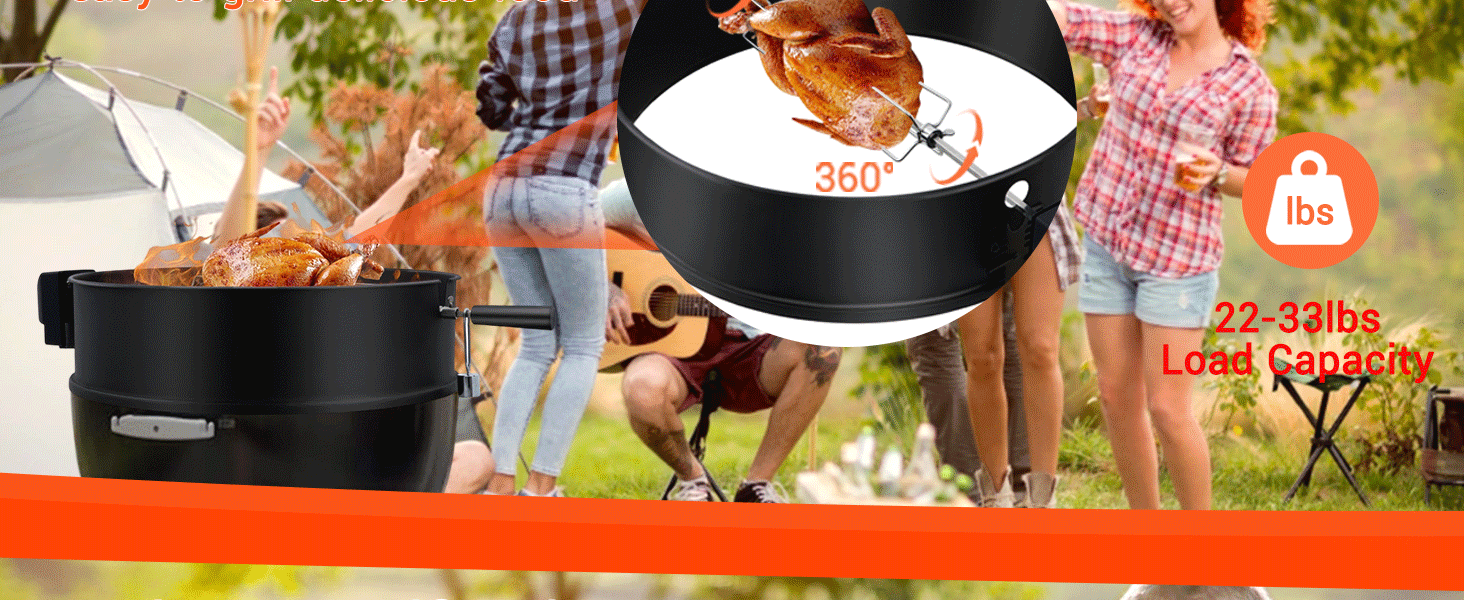 【Dual-Purpose Functionality】- An adjustable opening at the front enables two operating modes: rotisserie kit or pizza oven kit. For rotisserie cooking, roast chicken directly on the grill. For pizza, preheat for 10-20 minutes to enjoy delicious homemade smoked pizza in minutes.