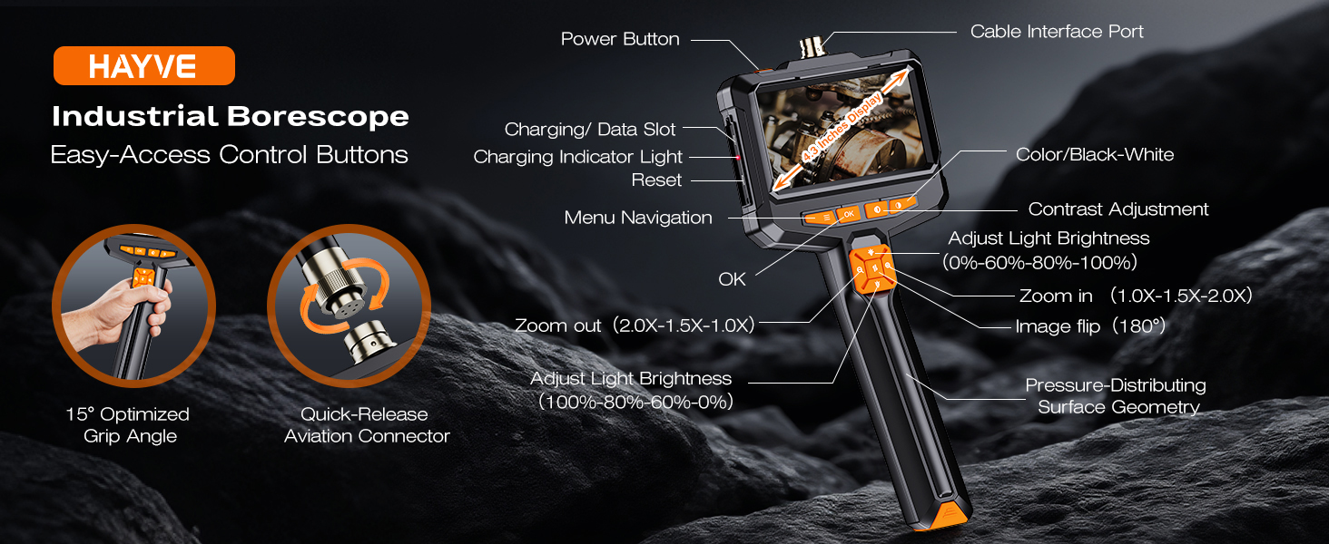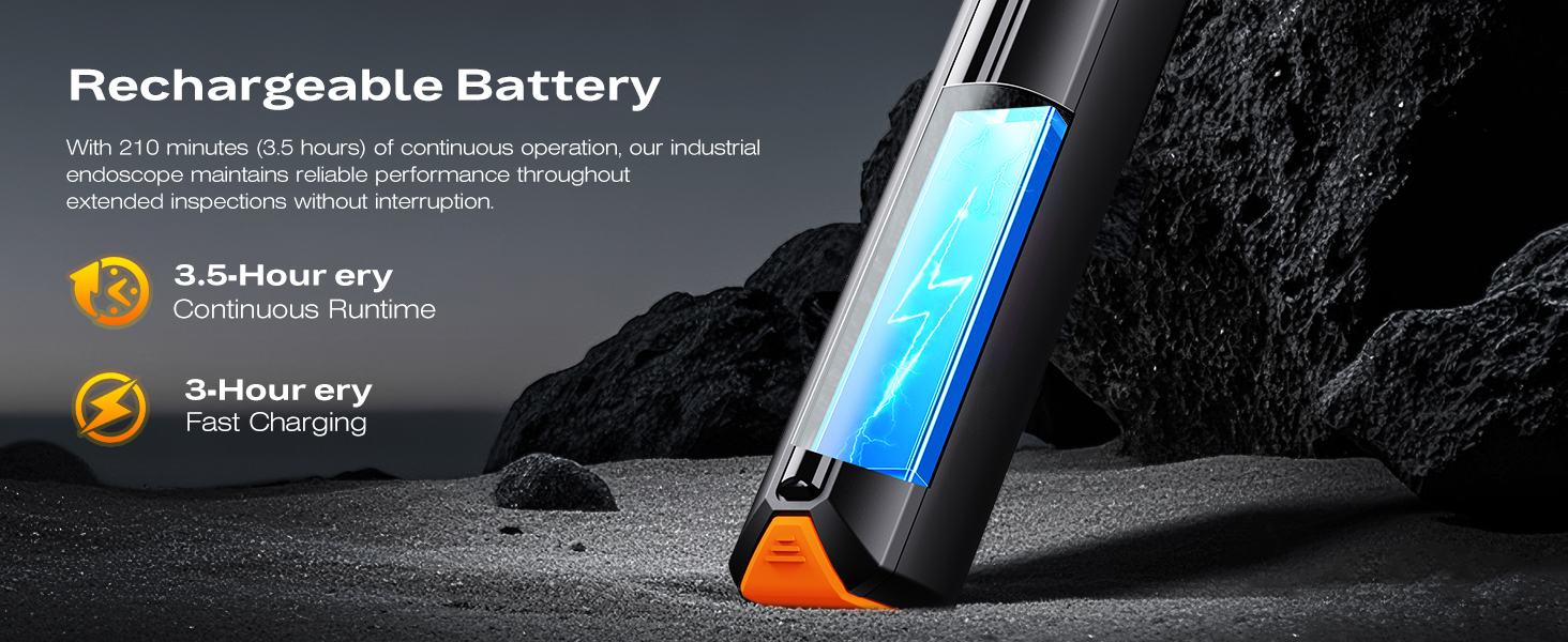 【Handheld Industrial Endoscope】 Meet your new handy inspection tool! It's ergonomically designed to be light and fits snugly in your palm. Get up to 4 hours of use from a quick USB charge. And here's the clincher: it works without any WiFi, apps, or a smartphone. What's the catch? None! It's genuinely ready the moment you turn it on.