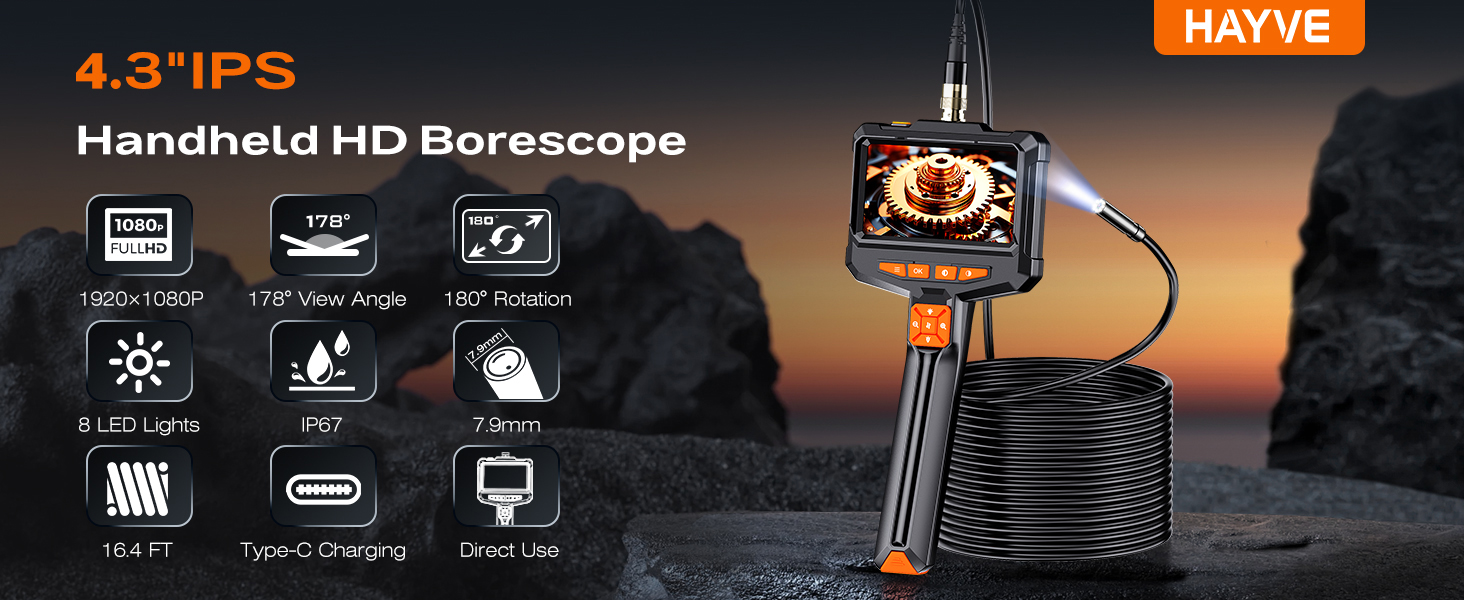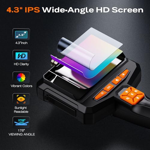 【4.3-inch HD Endoscope Camera】 This clever endoscope comes with a bright 4.3-inch IPS colour screen and a proper HD resolution of 1080×1920, so you get pin-sharp images every time you have a look. With its 178° wide-angle lens, you can easily peek into all those tricky nooks and crannies.