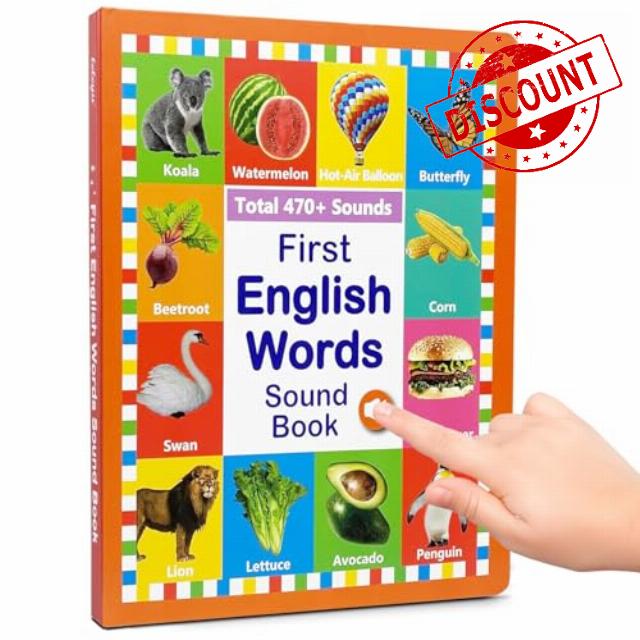 Educational resource to enrich the English vocabulary of toddlers in an interactive way, ideal for birthdays and everyday learning moments thanks to its talking book.