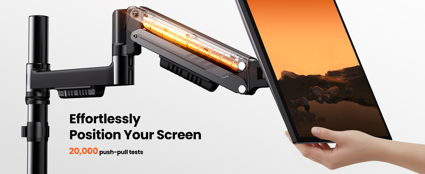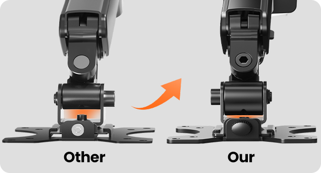 Reinforced VESA head with a wider bearing surface and precision-milled panels greatly reduces gaps at the hinge and mounting plate. The tighter fit cuts wobble and rattling, keeping your monitor level and stable even when the arm is fully extended.