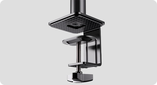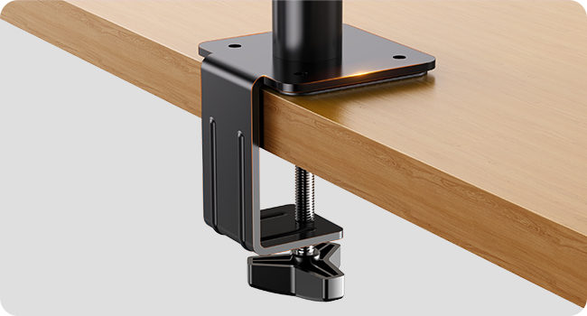 The one-piece metal C-clamp locks onto the desk edge with a wide contact area, spreading the load while saving workspace. Strong threads and a large knob create a tight hold that resists shaking without damaging your tabletop.