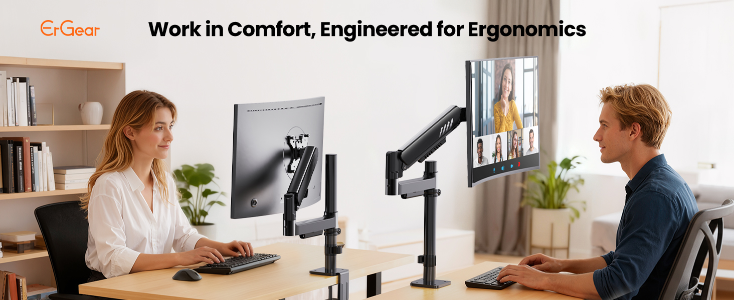 Say goodbye to neck and back strain with ErGear’s adjustable monitor arm. Effortlessly align your screen to eye level with smooth, tool-free adjustments. The sturdy, anti-slip design ensures a stable, wobble-free experience, letting you enjoy a more comfortable, ergonomic workspace all day long.