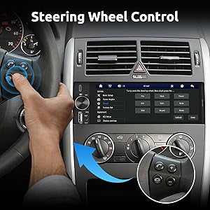 - 【Original Steering Wheel Control Compatibility】Supports programming with your car’s original steering wheel buttons, allowing you to control the stereo (volume, track, calls) directly from the wheel for safer and more convenient operation.