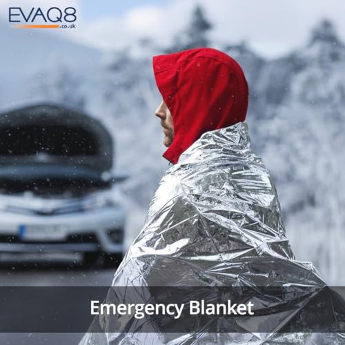 EVAQ8 Car Winter Intermediate Pack – De-icer Spray, Soft-Grip Ice Scraper, Demister Sponge, Wind-Up Torch, Foil Blanket & High-Visibility Vest in Deluxe Gift Bag