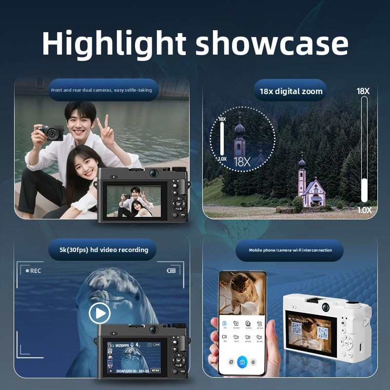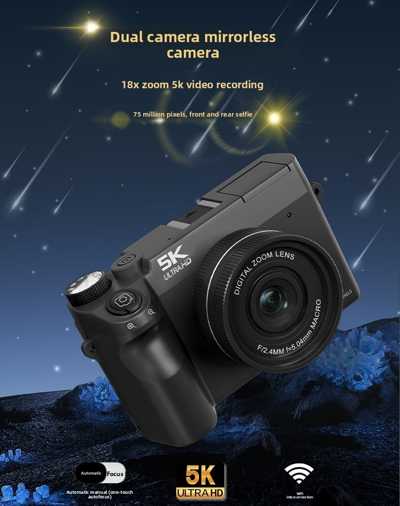 5K HD Video Recording – Capture life’s moments in stunning clarity. 75 Million True Pixels – Get rich details with no false claims. Ultra HD CMOS Image Sensor – This is the core for guaranteed clear imaging. AF Smart Focus – Shoot and get perfect shots instantly, effortlessly. USB / Wi-Fi Connectivity – Enjoy fast transfers and easy sharing. One-Touch Front/Rear Lens Switch – Take super-fast selfies and save time. 19 Adjustable Filters – Unleash your creativity and set your style. 3.0″ Ultra HD Screen – A large display for easy preview and operation. 18x Digital Zoom – Capture subjects near or far with great detail. Entry-Level Portable Mirrorless – It’s lightweight, easy to use, and perfect for beginners. Adjustable Smart Flash – Get natural lighting, even in dim conditions. Record Every Beautiful Moment – Connect emotionally and capture the now.