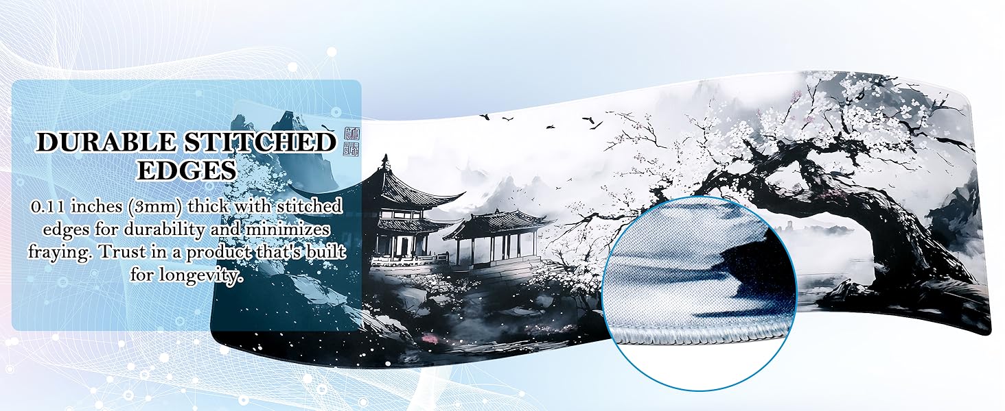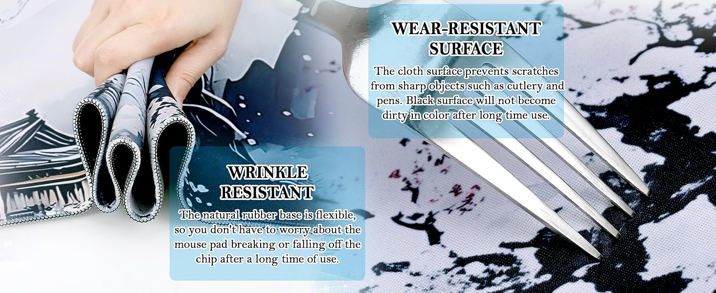 【Durable】The mouse mat is surrounded by a durable and anti-abrasive double stitching design, which prevents the mouse pad from wearing out, deforming and falling off, effectively protecting the desktop pad.