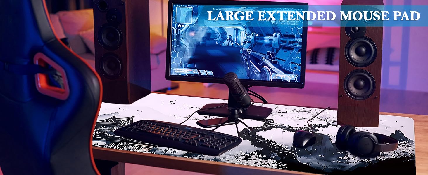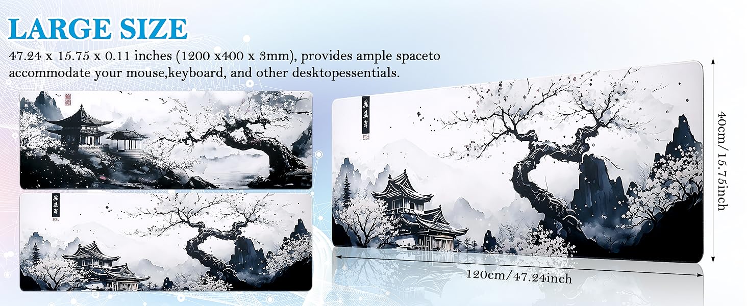 【High Quality Material and Extra Large Size】The large gaming mouse pad is made of high quality natural rubber, healthy and odourless, the size of the mouse pad is 120 x 40cm / 47.2 x 15.7 inches, which provides a wide space for your laptop, mouse and keyboard.