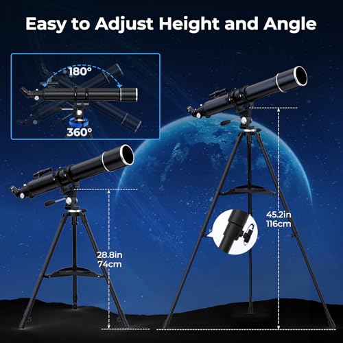 - 【Easy Setup for Beginners & All-in-One Portable Package】This telescope sets up in minutes with clear instructions, making it perfect for adults, kids, and beginners. All components fit neatly into the included padded carrying bag, making it your perfect portable companion for backyard astronomy, camping trips, or travel. A fantastic educational gift and Christmas gift.