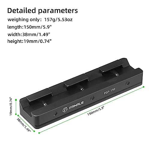 - 【multipurpose】: FANAUE FGP-150's This Swiss Plate is the interface between the Picatinny Rail and the Arca Quick Release Tripod Mount. This versatile Picatinny clamp seamlessly combines the functions of a Picatinny rail and an Arca Swiss tripod mount, giving you greater flexibility and convenience.