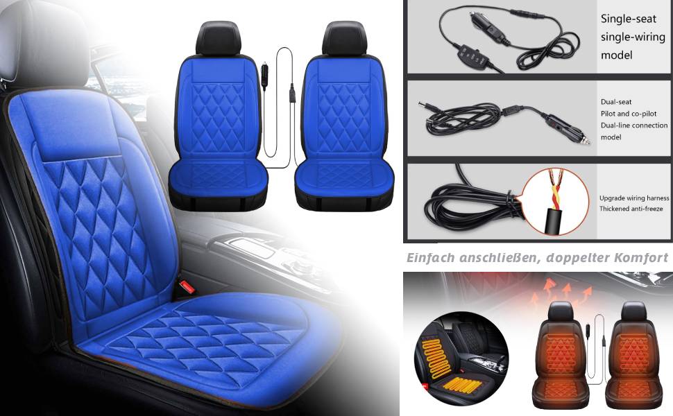 Fast Heated Seat Cushion with Pressure Sensitive Switch, Non-slip Heat Seat Cover for Home, Office Chair Large Heating Area Heated Seat Cover with Full Back Support (2, Grau, 50 * 125 cm)