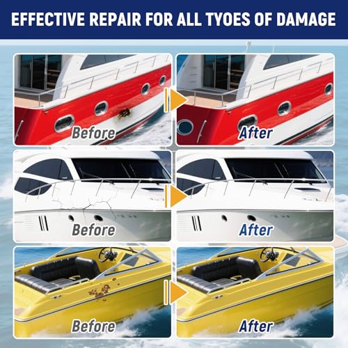 Perfect Color Matching:Seamless repairs with our gelcoat repair kit for boats base color, complemented by six color tints: black, white,blue, yellow, red and green.By adding small amounts of the appropriate tint, you can perfectly match your boat’s original color for an invisible, seamless repair.This fiberglass repair kit ensures your boat looks as good as new