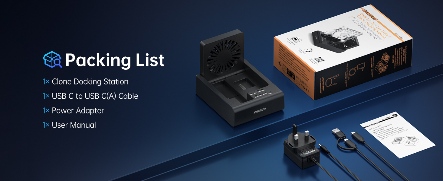 FIDECO USB C Docking Station for M.2 PCIe NVMe SSD and 2.5/3.5 inch SATA HDD with Bidirectional Offline Clone, M.2 NVMe to USB Adapter, 10Gbps SSD Reader with Foldable Cooling Fa