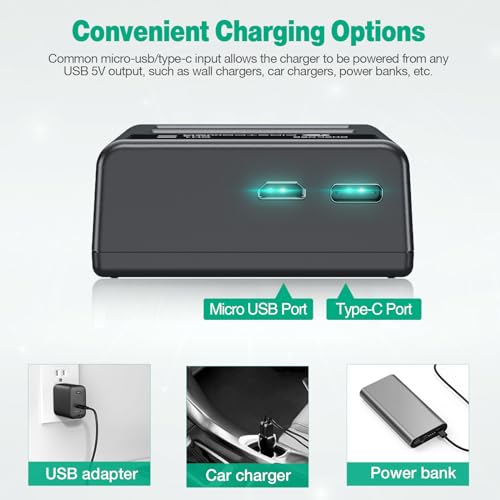 - 【Flexible Charging】Common Micro-USB & Type-C input makes the charger possible to be powered up by any USB 5V output, like laptop, car adapter, power bank etc. Gives you more options than a standard battery charger.
