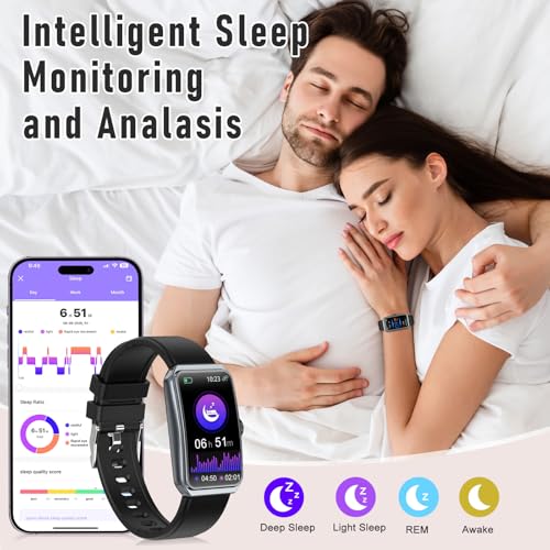 - 【Sleep Tracking & Sleep Score】The smart watch for android phones monitors your sleep and analyzes your sleep quality through Deep Sleep, Light Sleep, Awake stage, gives you a nightly sleep score in the app, leading a healthy lifestyle