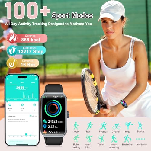 - 【103 sports modes & All-Day Activity Tracking】There are more than 103 sports modes tracking available in the activity trackers and Pedometer, The all-day activity tracking feature monitors your steps, distance, and calories burned all the day