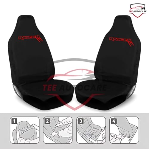 Fits Ford Ranger – Heavy Duty Waterproof Black Front Car Seat Covers (1+1 Set), Universal Fit, Durable & Easy to Clean (Red)