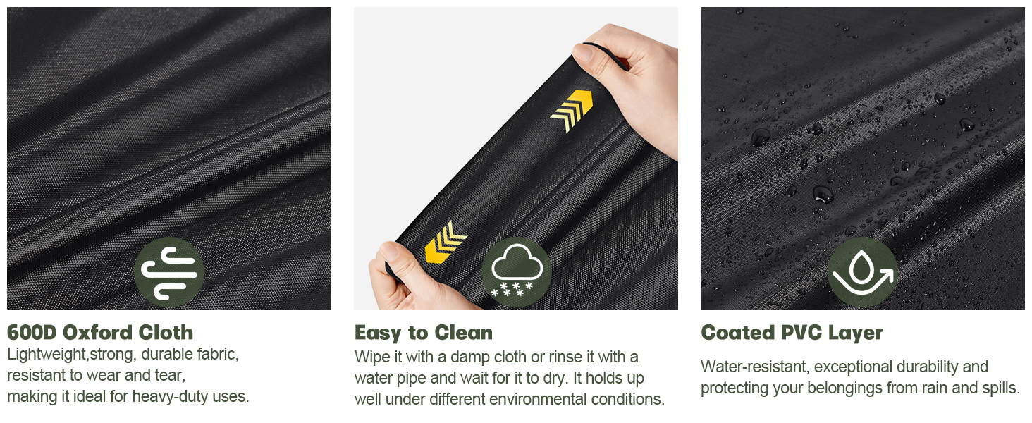 【Material】Crafted from premium 600D oxford cloth, coated PVC inner strength, our multifunctional folding table storage bag ensures exceptional durability and water resistance, protecting your belongings from rain and spills.