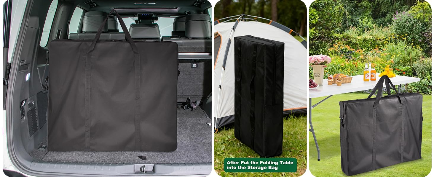 【Fit for 6FT Camping Table】37 x 31 x 4.5 Inches / 94 x 79 x 11.5 cm (LxWxH). Perfect for camping, picnics, sports events, road trips, grocery shopping, or any situation where you need to carry and store your folding table conveniently and efficiently. (Table NOT included.)