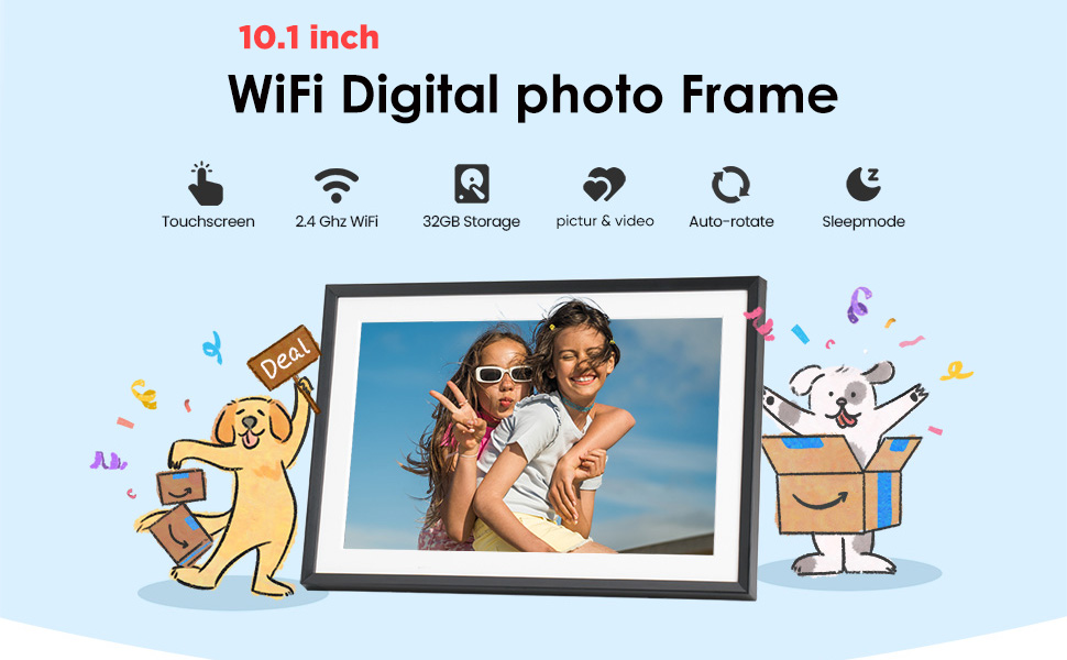 Frameo Digital Photo Frame 10.1 inch with 32GB Memory, 1280 * 800 HD IPS Touch Screen Electronic Wifi Digital Picture Video Frame, Auto-Rotate, Share Moments Instantly via Frameo App