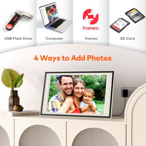 - Quick & Easy Setup with WiFi or No WiFi Photo Display: ①Multifunctional custom settings, such as slideshow mode, playback order, picture hiding/publishing, brightness adjustable, sleep mode, etc. Just connect the electric photo frame to WIFI, and you can invite unlimited friends. ② And our digital photo frames support WiFi free transmission. You can easily upload photos via SD/USB flash card (only support FAT32 format) or through laptops (USB-C cable is needed). This feature is easy to use for seniors who are not familiar with downloads from the Internet or apps, allowing them to quickly enjoy digital photo frames cheerfully.