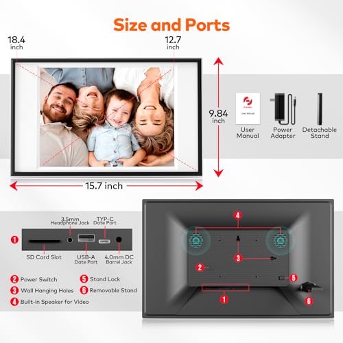 - [12.7 inch IPS 1440x1080P FHD Touchscreen] 12.7 inch WiFi digital photo frame with 1440×800 pixels touch screen with 178° angle. KPKUE large picture frame vividly displays all precious moments. Multiple image formats, JPG/JPEG/PNG/WEBP and MP4 video format are supported. Tap the "React" feature to send emojis to your loved ones in real time. Let them know how you feel the photos they sent to your frame. KPKUE digital photo frame with touch screen that is very easy for anyone to use. For friendly doubts, you can set a sleep mode on the KPKUE digital photo frame. It will automatically turn off when sleep mode is on.