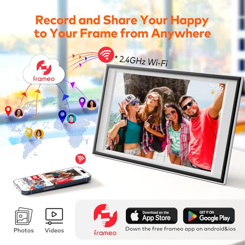 - [Privacy & Security Sharing Photos/Videos via Free App "Frameo"] Set up the digital frame in minutes on WiFi and instantly add photos/videos from your phone using the free Frameo app, available on iOS and Android. Frameo App is a professional photo management app company that originated in Denmark, with GDPR/CCPA/PSTI/Intertek Cyber/RED DA (EN 18031) Assured Certification Only the friends you have added (no limited member numbers), no one can access your digital photo frame, so you don't have to worry about any photo leakage. The Frameo digital framework has users in more than 32 countries/regions around the world. The KPKUE digital photo frame is officially licensed by the company Frameo App.