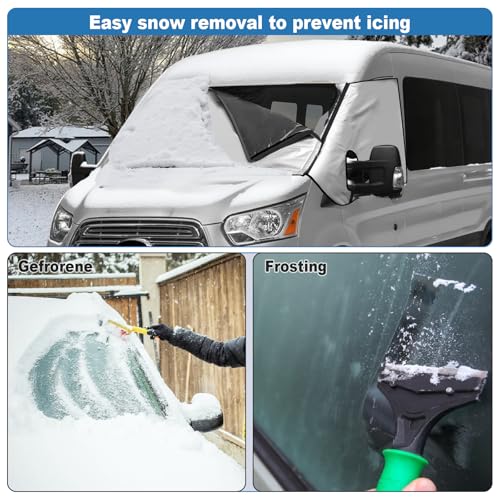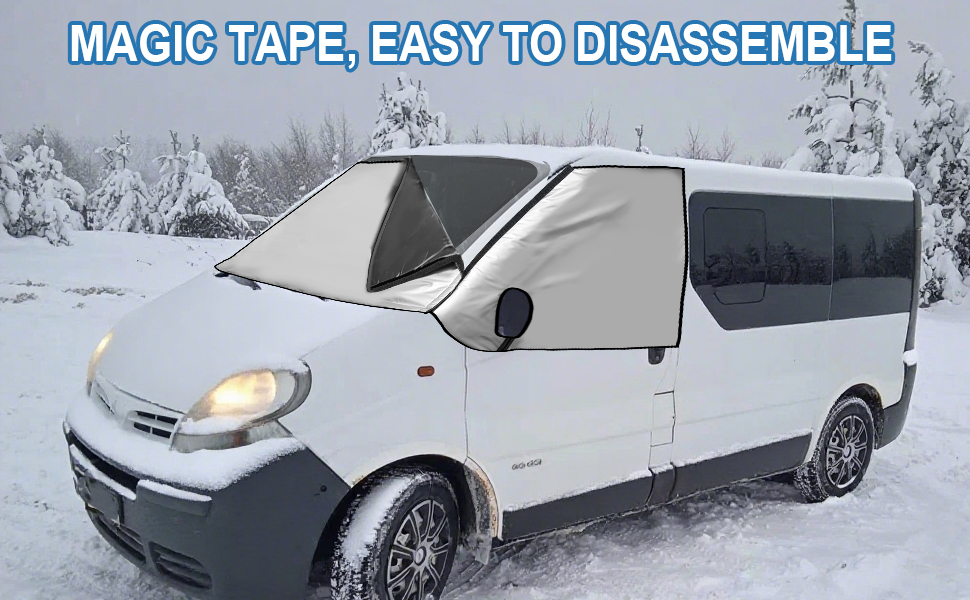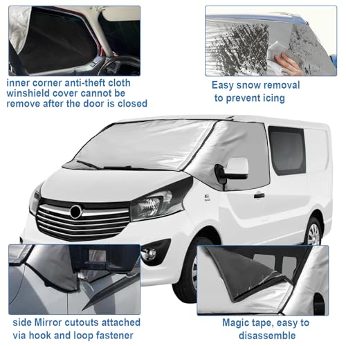 Front Windscreen Cover Fit for 2001-2014 Opel Vivaro, Renault Trafic, Nissan Primastar, Thickened 210D Oxford Cloth Detachable Windshield Cover, Sun Protection Anti Frost Ice Dus