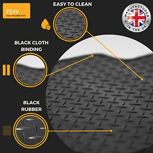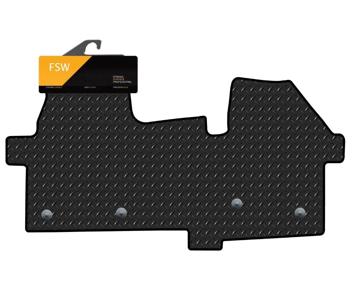 WATERPROOF & REINFORCED RUBBER: Our van mats feature a sleek, modern design with a reinforced rubber texture that enhances your vehicle's interior. We have manufactured this set from a multi-layered, hard-wearing rubber compound, this set is built to last through all seasons, delivering exceptional durability. Unlike universal mats, our fully tailored FSW heavy-duty rubber mats ensure a perfect fit for your specific van make and model