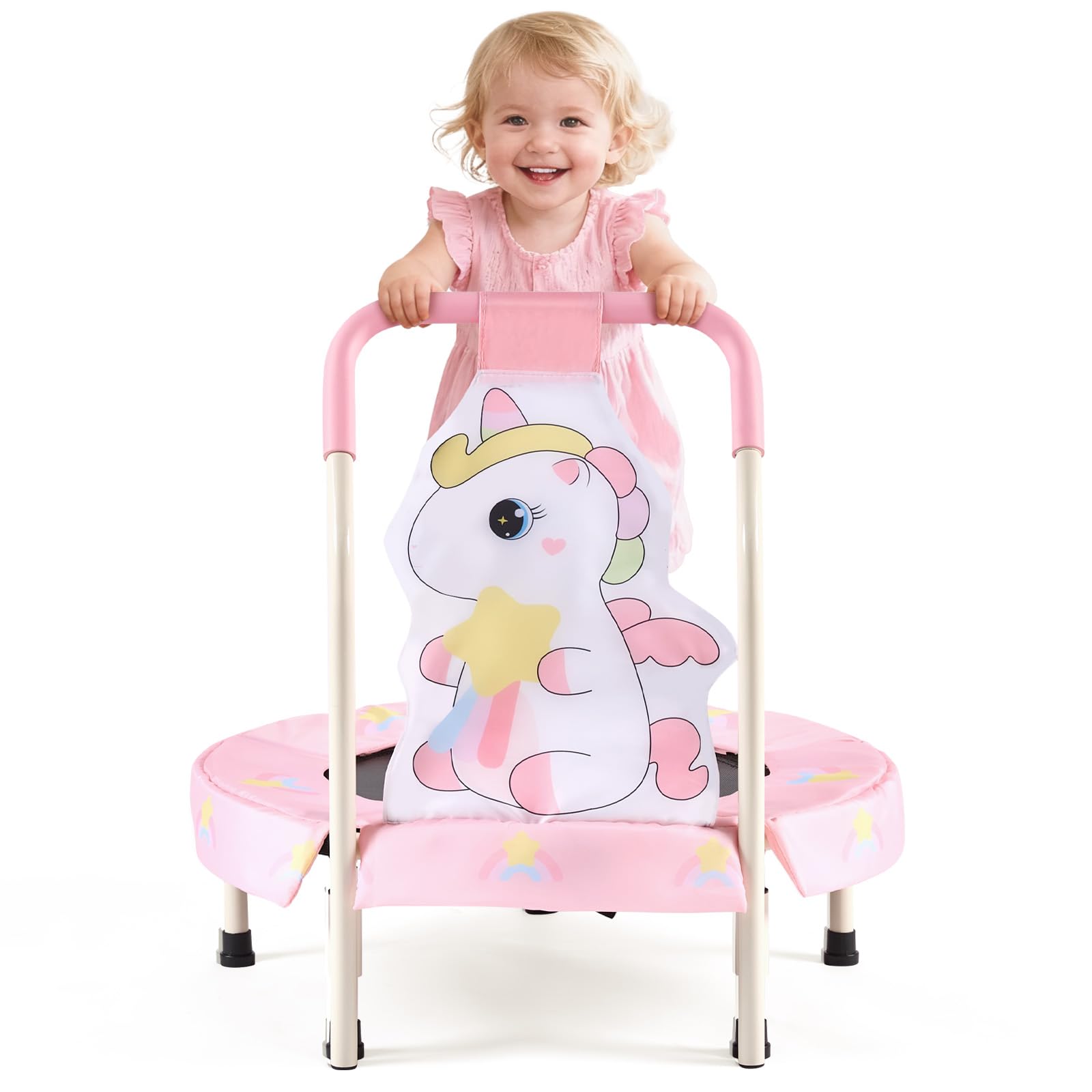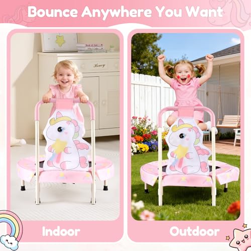FUNLIO 27″ Unicorn Mini Trampoline for Toddlers, Small Trampoline with Safety Handle, Rainbow Fairy Unicorn Jumping Toy for Younger Kids, Foldable & Portable for Indoor/Outdoor Fun, CPC&CE Certified