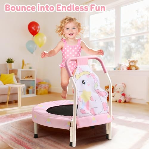 FUNLIO 27″ Unicorn Mini Trampoline for Toddlers, Small Trampoline with Safety Handle, Rainbow Fairy Unicorn Jumping Toy for Younger Kids, Foldable & Portable for Indoor/Outdoor Fun, CPC&CE Certified