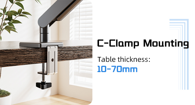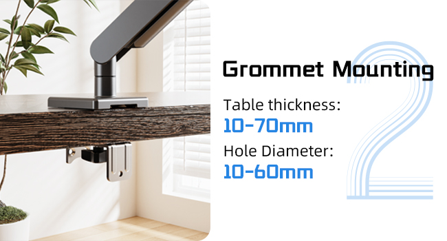 - 【Dual Mounting Solutions】 This monitor desk mount provides two installation methods: clamp style for 1-7 cm thick desks and grommet style for 1-6 cm diameter holes. Both mounting options feature tool-free setup with simple screw tightening, allowing quick configuration to accommodate various workspace requirements and desk specifications.
