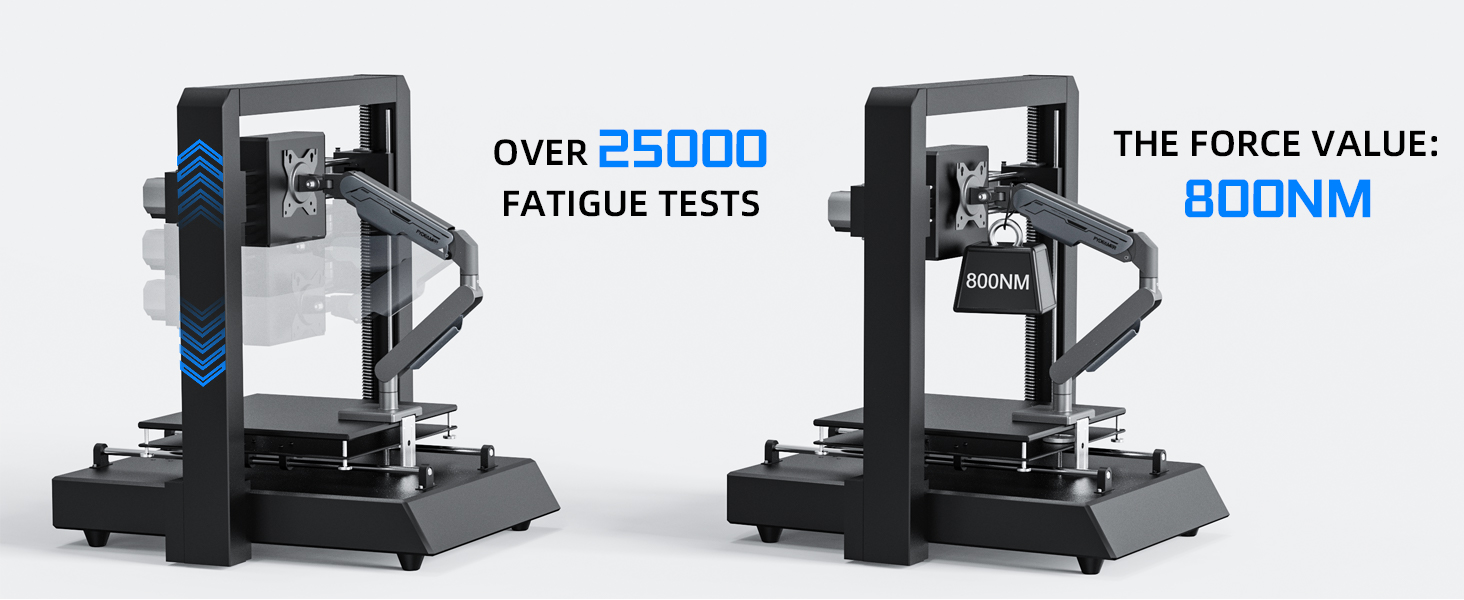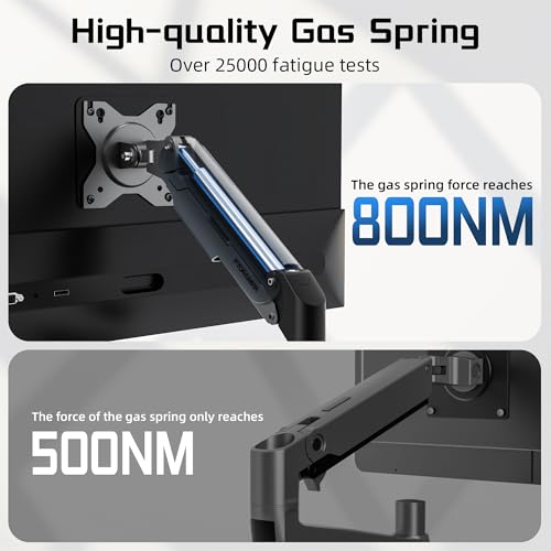 - 【Enhanced Durability Construction】 This heavy duty monitor arm features industrial-grade materials tested through 25,000 fatigue cycles, exceeding the standard 20,000-cycle requirement. With automotive-grade gas springs delivering 800 NM force, it provides 60% greater strength than typical 500 NM models, ensuring exceptional stability and long-term reliability for demanding work environments.