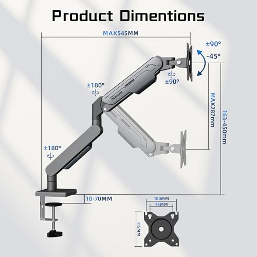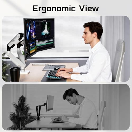 - 【Ergonomic Workspace Solution】 This gas spring monitor arm promotes healthy working postures and helps prevent shoulder and neck discomfort during extended computer use. The intelligently designed stand encourages proper viewing angles for both professional tasks and entertainment activities, enhancing productivity through optimized screen placement that minimizes physical strain.