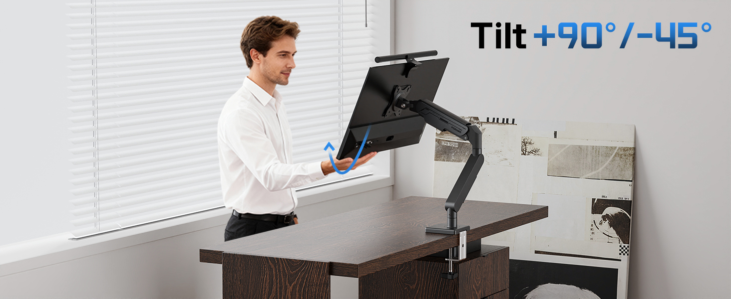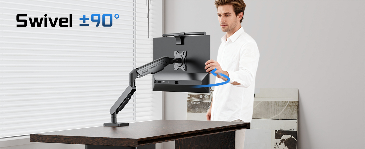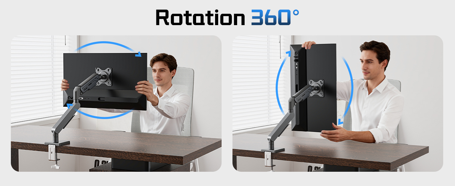 - 【Complete Adjustment System】 This adjustable monitor mount offers ±45° tilt adjustment, 360° smooth rotation capability, and ±90° horizontal swivel range. The precision-engineered adjustment mechanism enables effortless single-handed positioning to achieve optimal ergonomic alignment, effectively reducing neck and eye strain during prolonged computer use sessions.