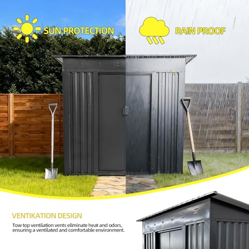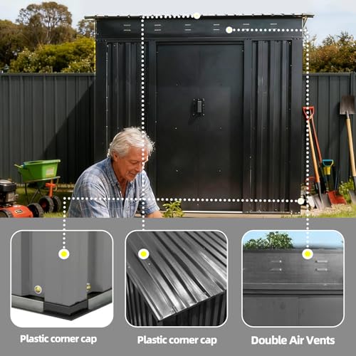 DUAL SLIDING DOORS & IMPROVED AIRFLOW: Featuring two smooth, lockable sliding doors for easy access from either side. Enhanced with strategic ventilation vents to promote excellent air circulation, effectively reducing dampness, preventing mould, and eliminating unpleasant odours inside your shed.
