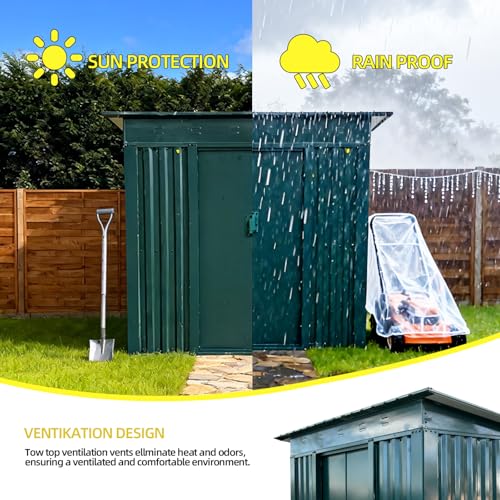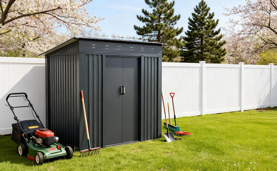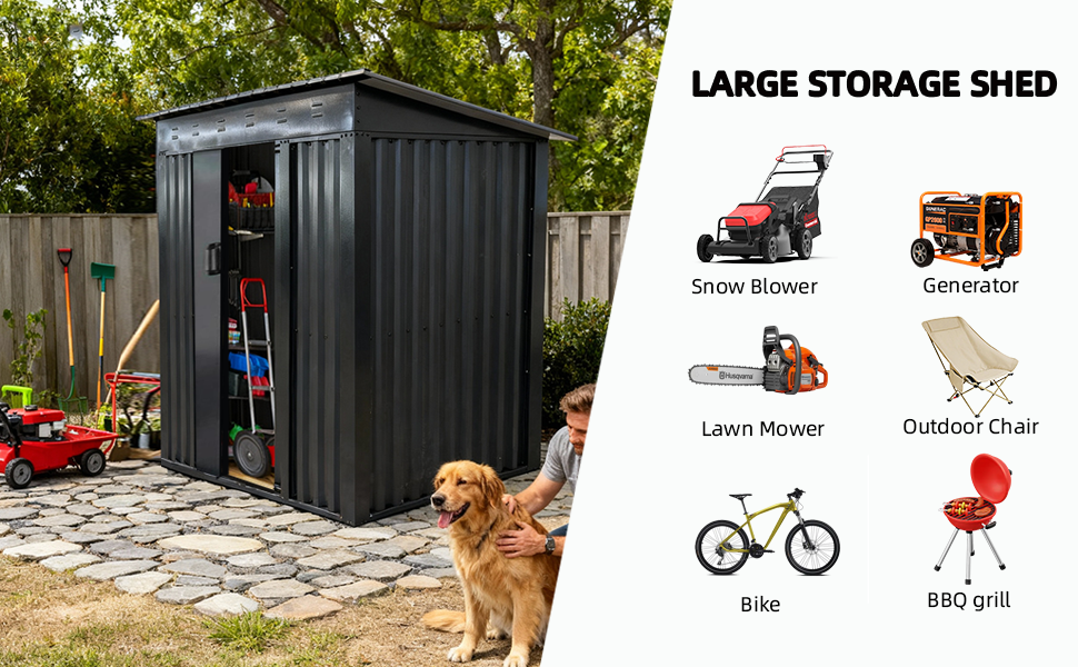 DUAL SLIDING DOORS & IMPROVED AIRFLOW: Featuring two smooth, lockable sliding doors for easy access from either side. Enhanced with strategic ventilation vents to promote excellent air circulation, effectively reducing dampness, preventing mould, and eliminating unpleasant odours inside your shed.