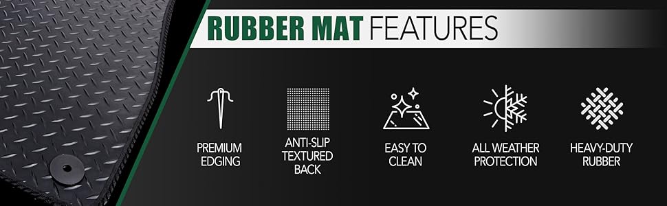 Smart and Durable Construction: Each Rubber Mat is professionally edged with Green cloth binding for a smart finish, and constructed with heavy-duty rubber to withstand daily wear and tear.