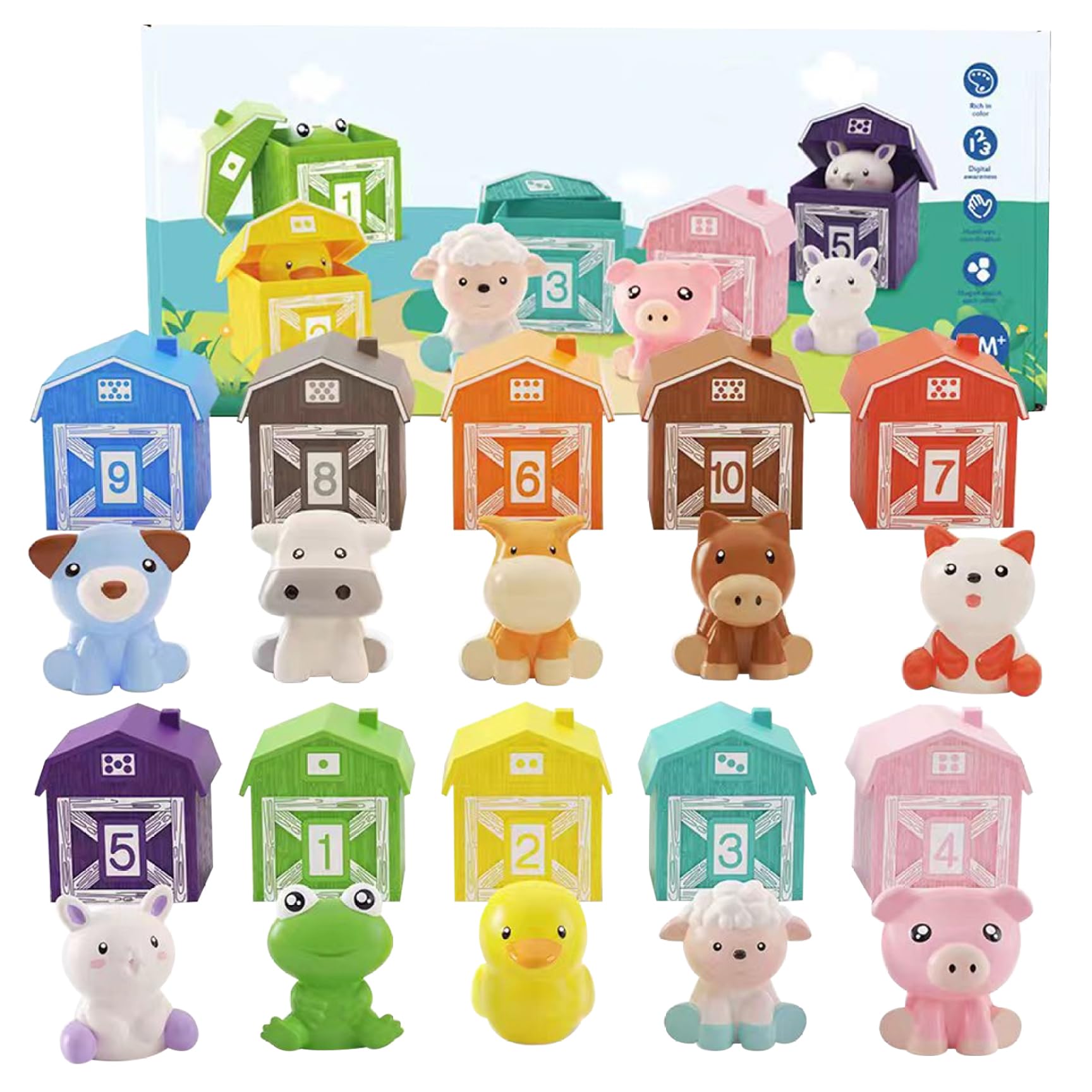 - Package Content: This baby farm animal toys set includes 10 adorable baby farm animals and 10 barns. The animals are put inside the barns, and when children open them, they discover the animals, creating an exciting and fun experience.