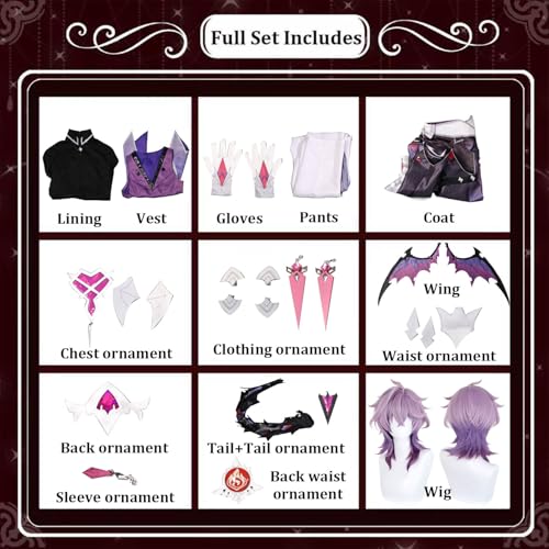 Genshin Impact Durin Cosplay Costume Outfit Game Character Kinich Varesa Uniform Full Set Halloween Carnival Party Dress Up Suit with Wig Tail Wing for Me