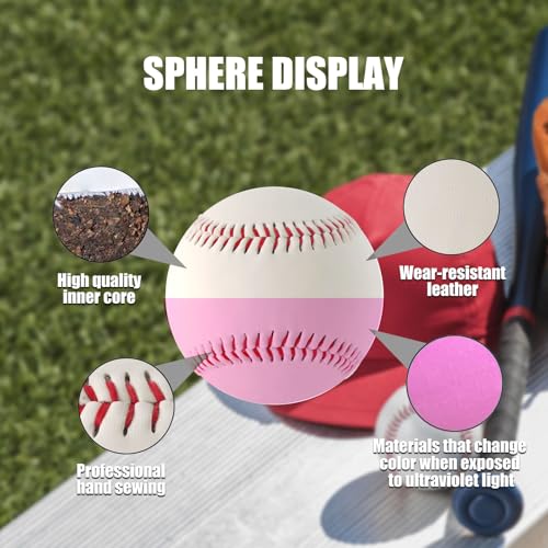 COLOR CHANGING: Innovative baseball features UV-reactive material that changes color when exposed to sunlight – transforms from white to pink without batteries