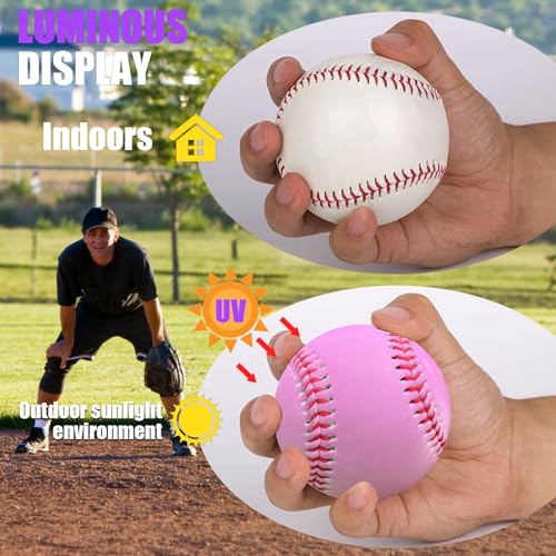 Experience the magic of this color-changing baseball that transforms when exposed to UV light! Perfect for both indoor practice and outdoor play, this innovative baseball features special UV-reactive materials that create an eye-catching display when hit by sunlight. The standard-sized ball measures 2.5 inches in diameter and switches from white to pink when exposed to UV rays, making it not just a training tool but also an engaging visual experience. Crafted with durable PVC leather and featuring classic red stitching, this baseball maintains the authentic look and feel of a traditional baseball while adding an exciting twist. No batteries required – the color-changing effect is purely powered by sunlight. Ideal for training sessions, casual play, and developing baseball skills for ages 5 and up. The set includes 4 baseballs, making it perfect for extended practice sessions or group activities. The foam construction ensures a safe yet realistic experience for developing players. These unique baseballs are particularly useful for tracking ball movement and improving hand-eye coordination while adding an element of fun to every catch and throw.