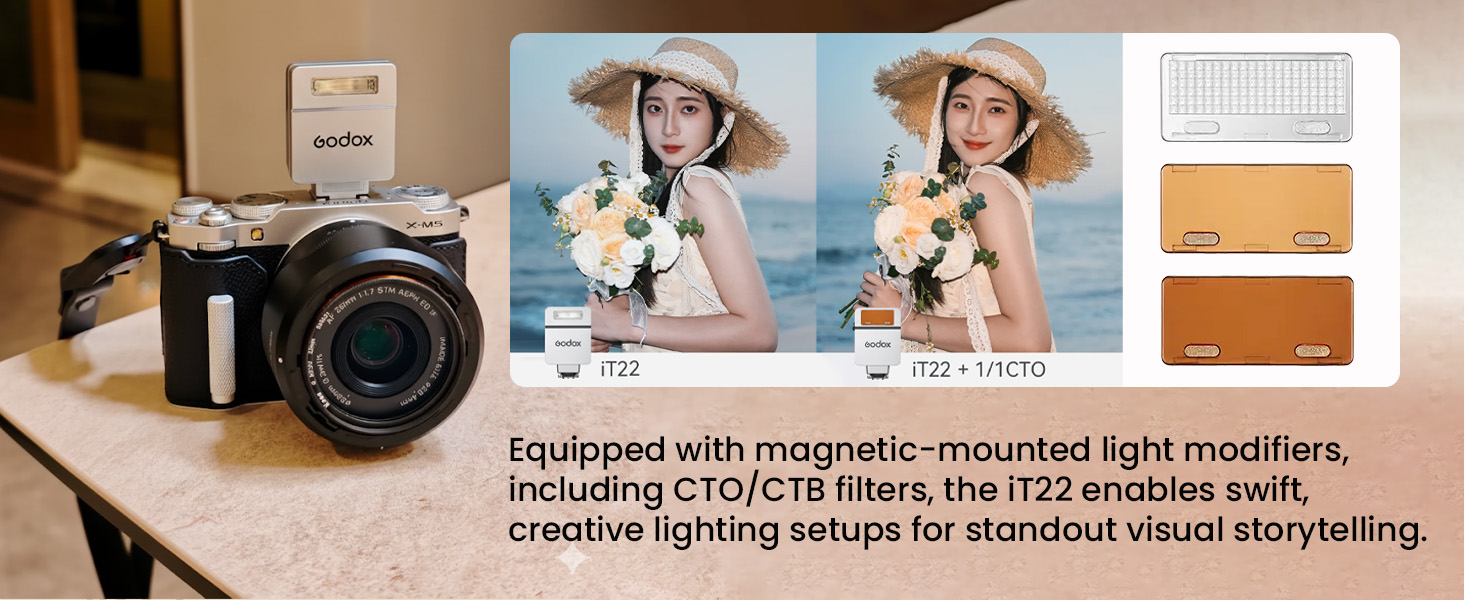 Ultra-Compact TTL Flash: The iT22 offers fully automatic TTL exposure metering in a compact form factor—just 4×6.4×2.8cm and 52g, perfect for creators who want powerful lighting on the go.