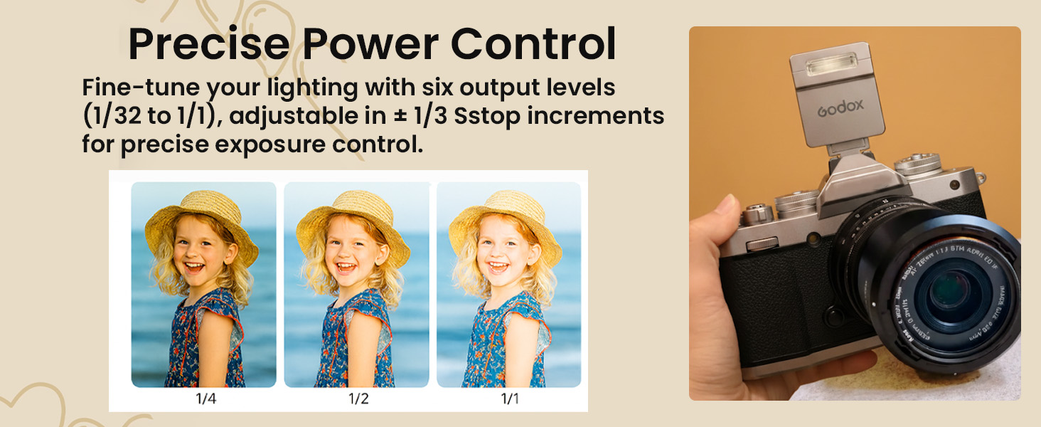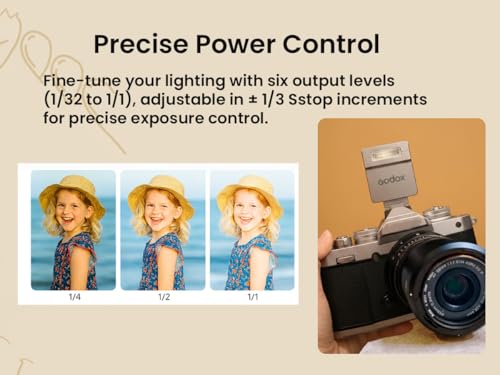 Manual & TTL Dual Mode with Quick Switch: Switch effortlessly between TTL and Manual modes using the dedicated M/TTL button. Fine-tune your lighting with six output levels (1/32 to 1/1), adjustable in ±⅓ stop increments for precise exposure control.