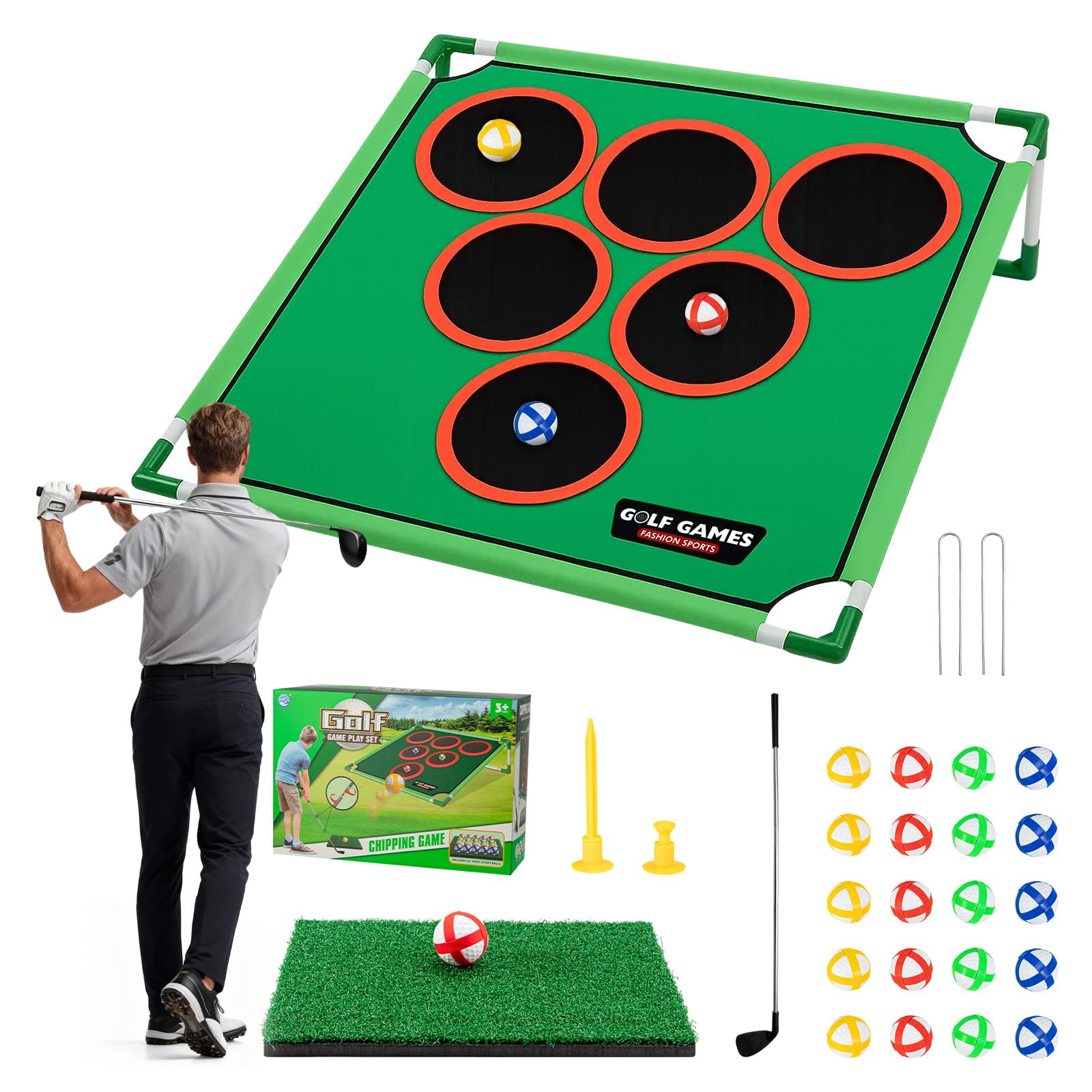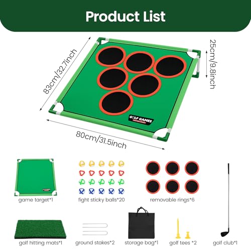 - 【 & 】 Challenge your friends and family to a fun “Battle Golf” match! This exciting game features 5 color-coded targets and 20 Velcro balls, perfect for indoor or outdoor play. Set up multiple games or practice your chipping skills solo. It’s the ideal golf game for adults and beginners alike, creating hours of competitive fun.