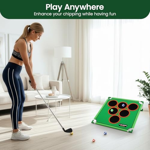 - 【 】 Elevate your putting and chipping skills without going to the course. The portable design and lightweight components allow for indoor golf game practice in your living room or office. Set up the targets in seconds on the included mat for realistic short-game training, rain or shine.