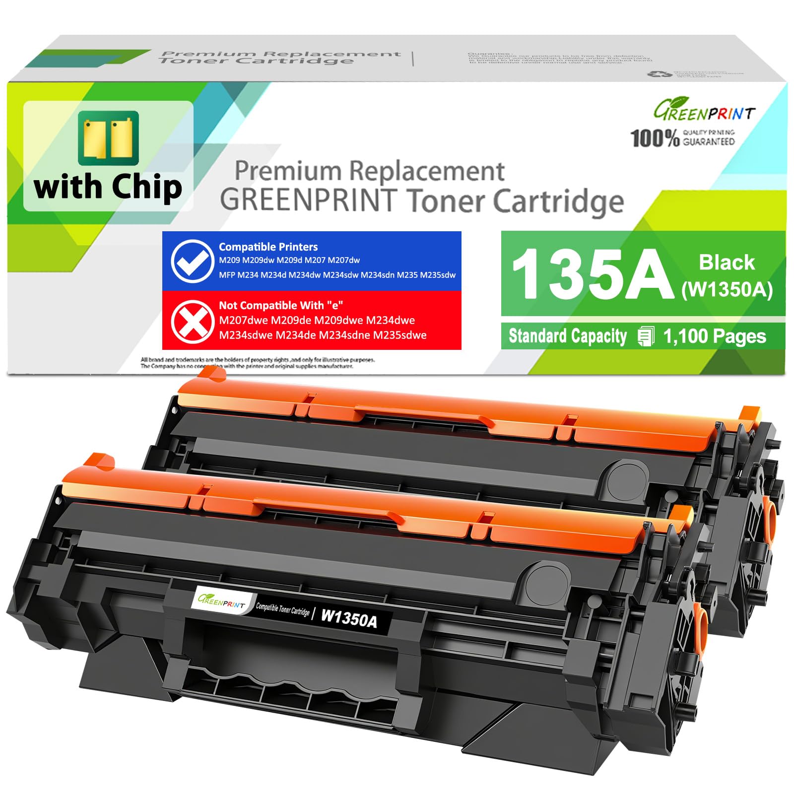 GREENPRINT WITH CHIP Compatible Toner Cartridge 135A W1350A 2 Blacks 1100 Page for M207 M207dw M209 M209d M209dw M234 M234d M234dw M234sdw M234sdn M235sdw, Can't Work with H P + Model End with ''e''